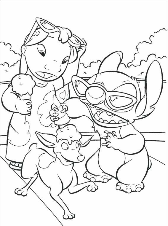 Stich, upuścił na psa smacznego loda Lilo jest bardzo zdziwiona, pokoloruj obrazek i zobacz jaki to pis.