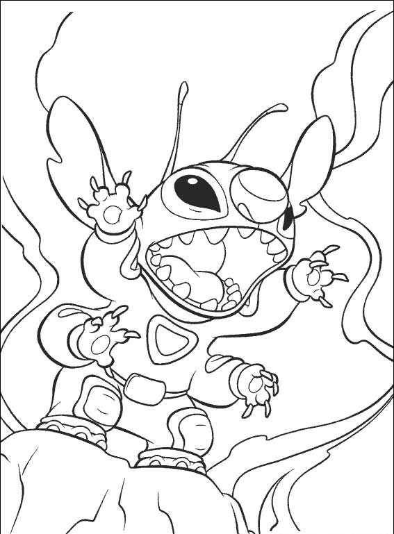 Stich ubrany jest w skafander i wygląda na bardzo złego,pokoloruj i zobacz gdzie się znajduje.