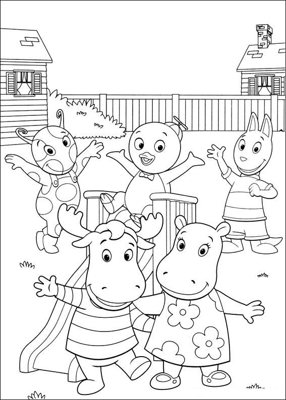 "Przyjaciele z podwórka" to kanadyjsko-amerykański serial animowany, emitowany swego czasu w Wieczorynce. Opowiada o pluszowych zwierzętach: żabie Żabusi, pingwinie Pingusiu, łosiu Łośku, hipopotamie Hipci i kangurze Kangusiu przeżywających wiele przygód.