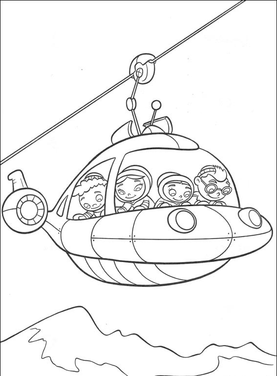 Mali Einsteini obserwują góry z kolejki linowej, pokoloruj ich.