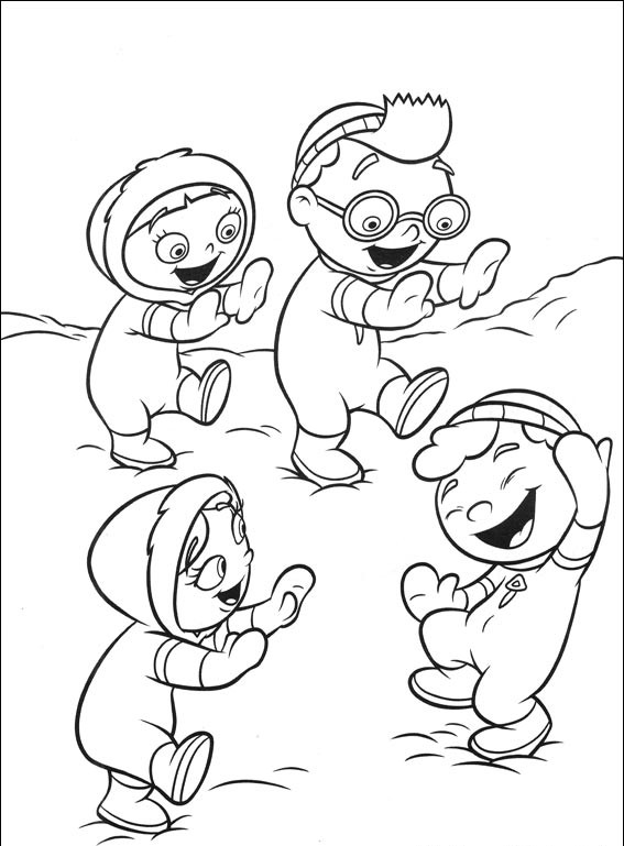 Przyjaciele bawią się razem na śniegu,pokoloruj ich.
