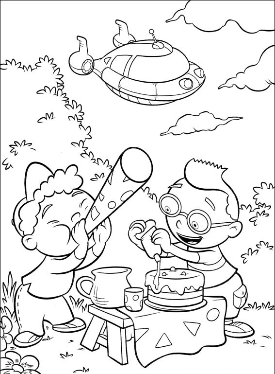 Dwoje przyjaciół robi tor urodzinowy,pokoloruj się i zastanów dla kogo jest.