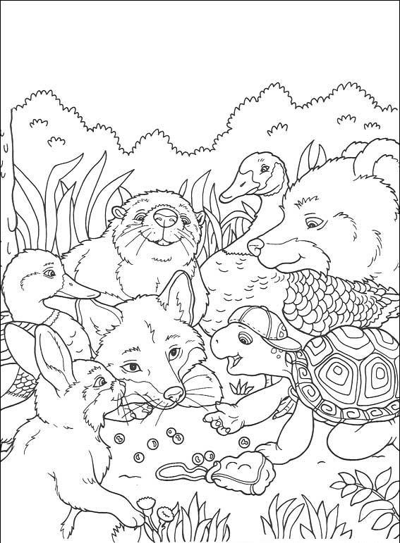 Franklin to bardzo przyjacielski żółw. Na pewno każdy widział bajkę o nim. Pokoloruj obrazki z Franklinem i jego przyjaciółmi.