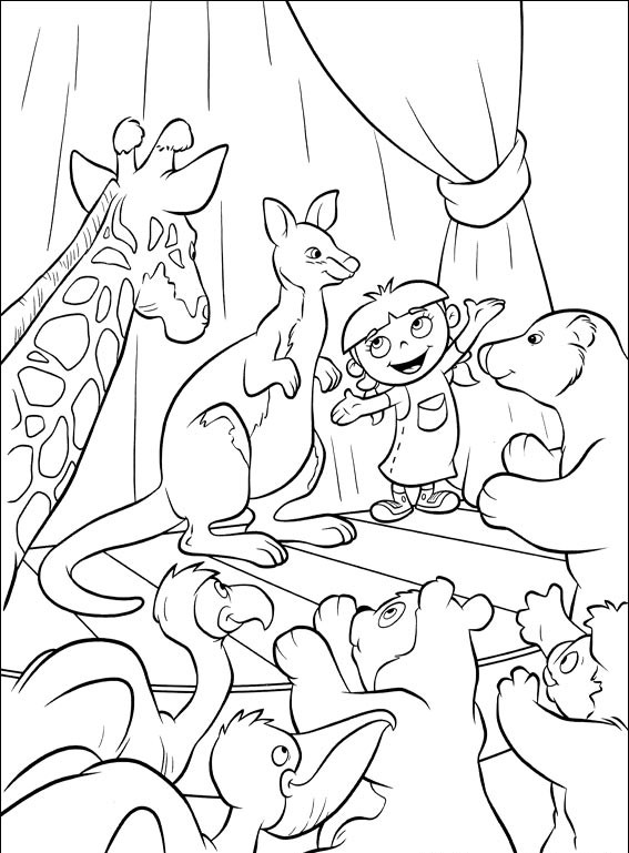 Zosia spotkała wiele miłych zwierząt,pokoloruj obrazek i nazwij je.
