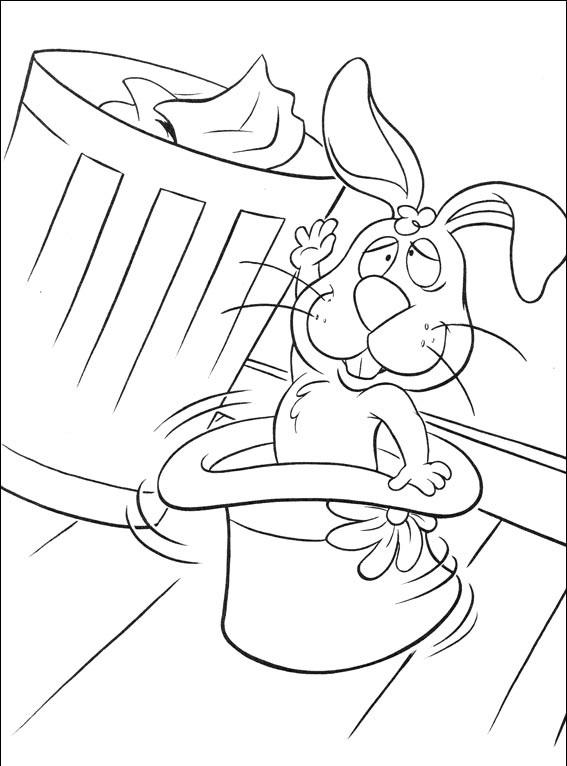 Królik siedzi w kapeluszu.