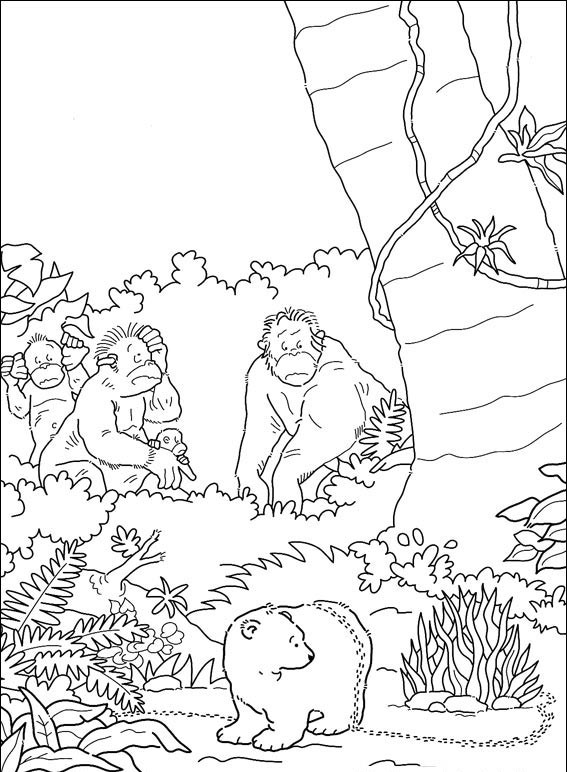 Małpy obserwują jak po małym misiu chodzi dużo mrówek.
