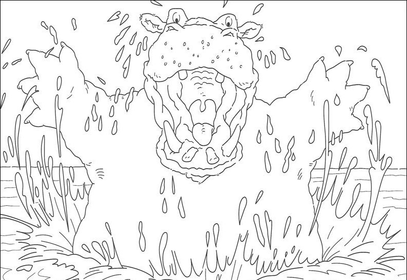 Hipopotam wyskakuje z wody i robi śmieszną minę.