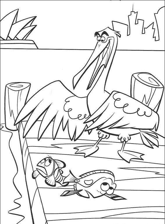 Marlin i Dory boją się pelikana.