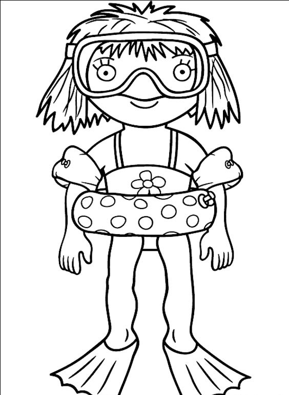 Dziewczynka przygotowuje się do nurkowania ubrała ona odpowiedni sprzęt.