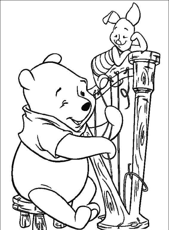 Prosiaczek słucha jak Kubuś gra na harfie.