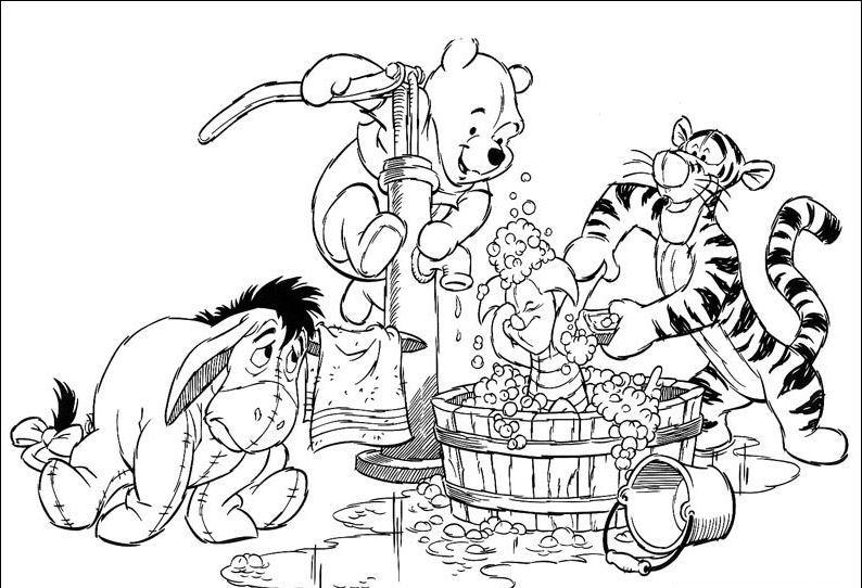 Kubuś z Tygrysem i Kłapouchym myją Prosiaczka.