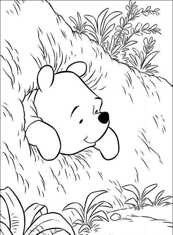 Kubuś wyglądający z dziupli.
