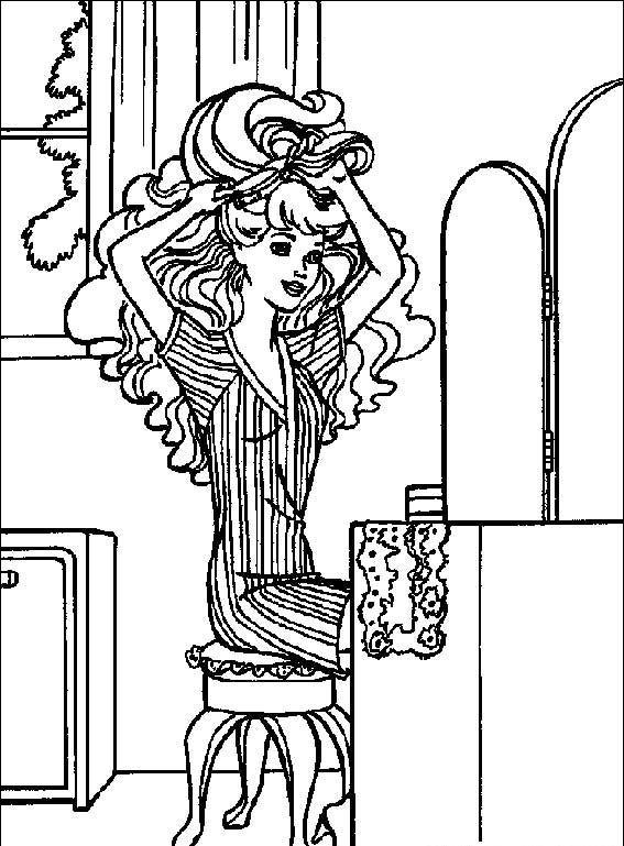 Barbie układa sobie fryzurę przy lusterku.