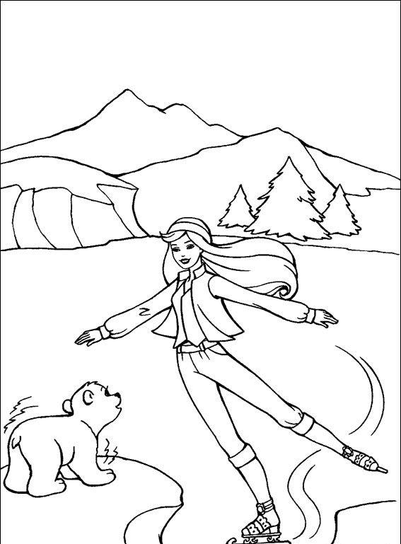 Barbie jeździ na łyżwach.