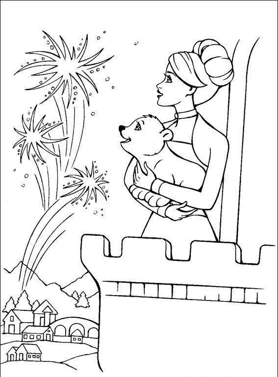 Barbie z niedźwiadkiem oglądają pokaz sztucznych ogni.