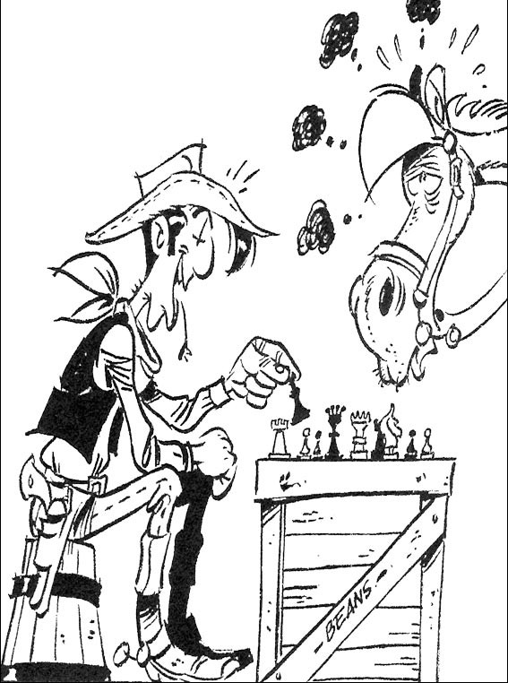 Lucky Luke wraz ze swoim koniem grają w szachy,niestety koń przegrywa.