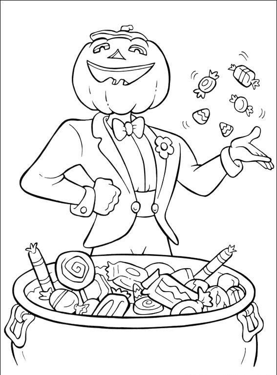 Człowiek z dynią zamiast głowy podrzuca słodycze.