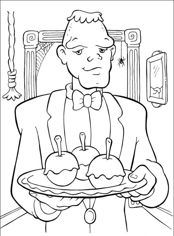 Frankenstein z potrawami na tacy.
