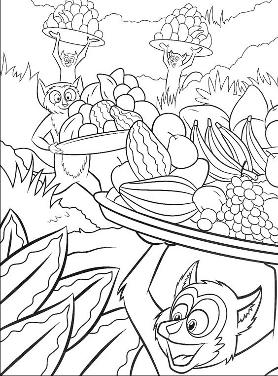 Lemury niosą bardzo dużo jedzenia dla swojego króla.