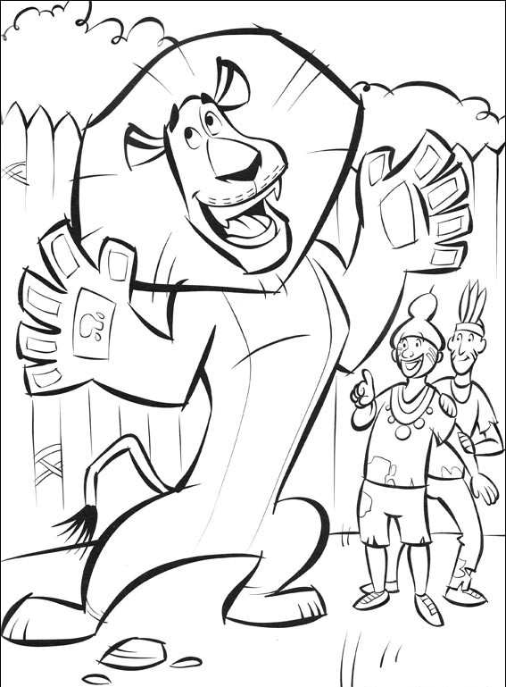Alex udaje miłego lwa podczas gdy ludzie go obserwują.