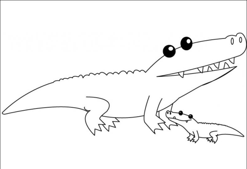 Starszy krokodyl razem ze swoim synkiem.