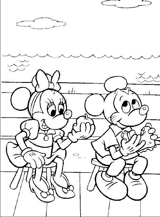 Miki i Minnie jedzą razem śniadanie.