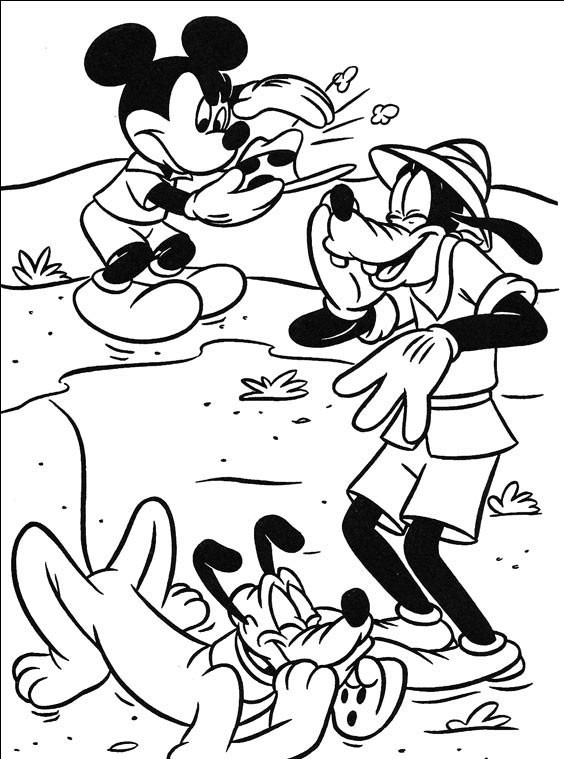 Goofy i Pluto śmieją się z mikiego ponieważ kapelusz mu spadł i się ubrudził.