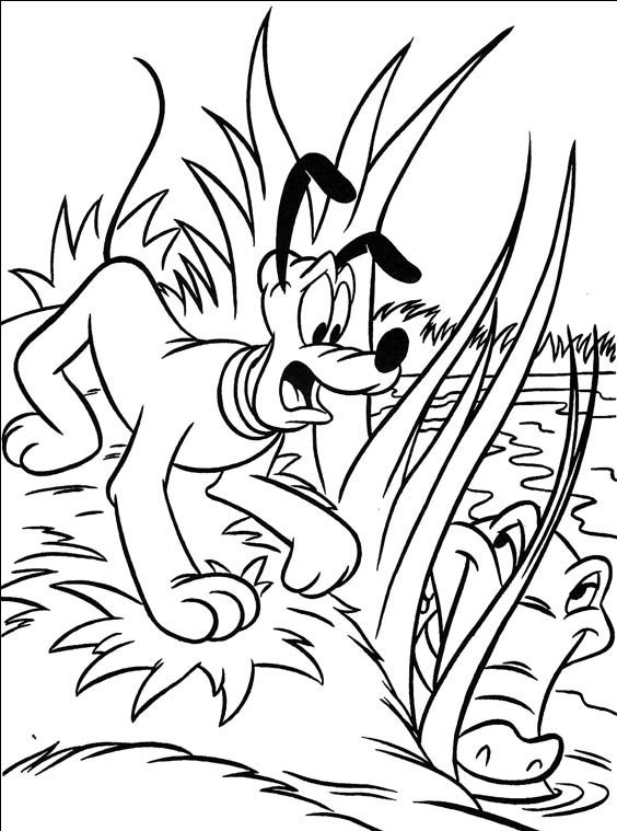 Pluto spotyka krokodyla w wodzie, bardzo się go wystraszył.
