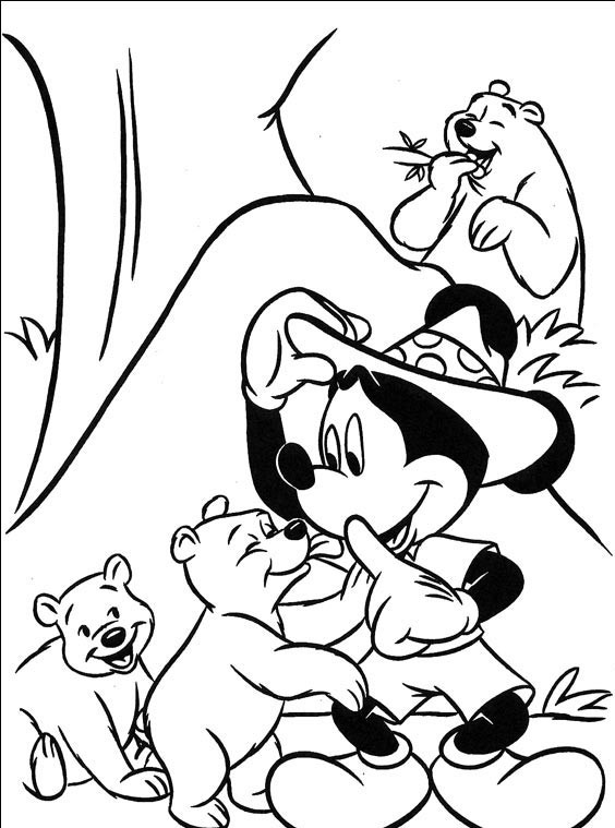 Miki spotyka małe niedźwiadki które chcą się z nim bawić.