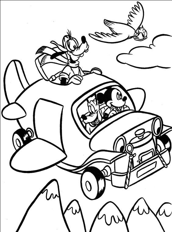 Samochód Mikiego zamienił się w latający i teraz latają wysoko.