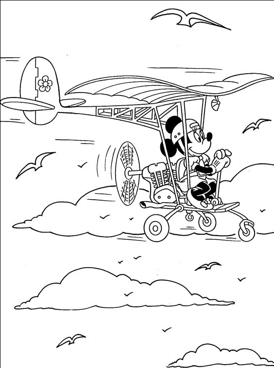 Minnie leci paralotnią wysoko w chmurach.