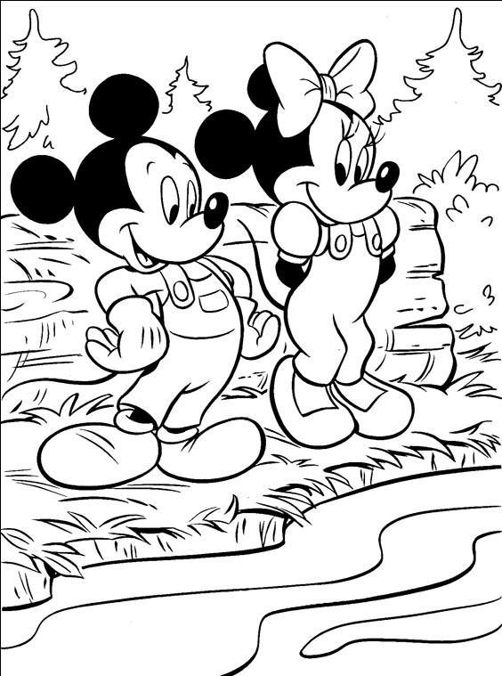 Miki i Minnie stoją nad rzeką,Minnie wpatruje się w Mikiego.