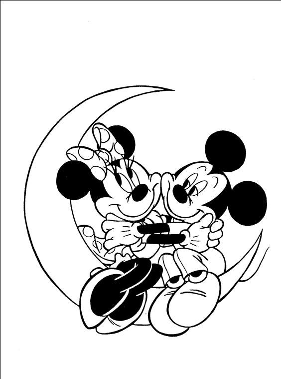 Miki i Minnie siedzą na księżycu i przytulają się.