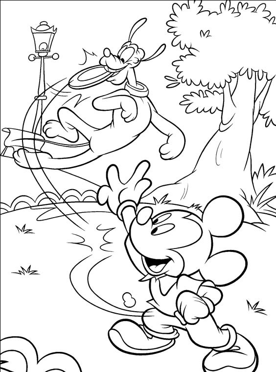 Miki bawi się razem z Pluto rzucając mu frisbee.
