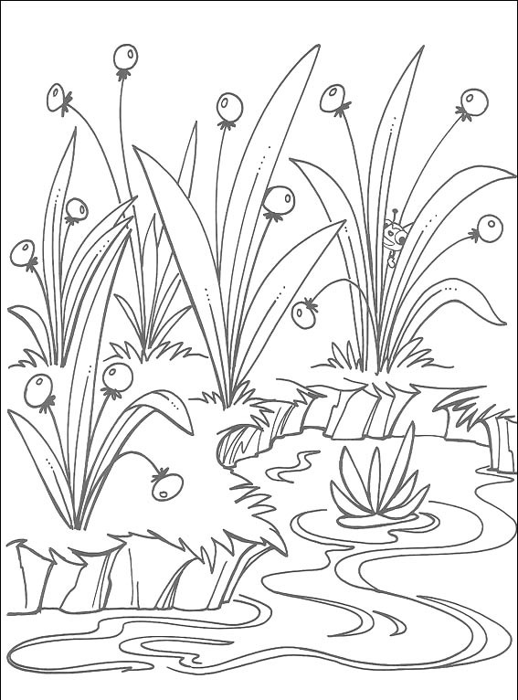 Pani pająkowa chowa się w trawie nad jeziorem.
