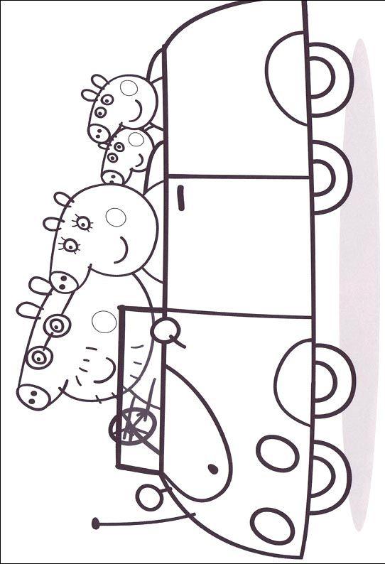 Świnka Peppa wraz z rodziną jadą samochodem.