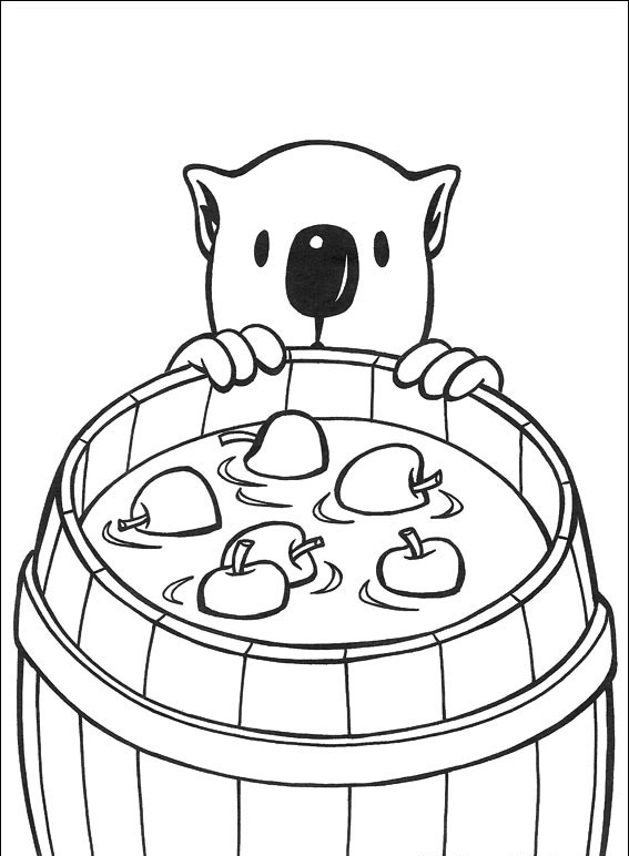 Jaś również odszukał beczkę pełną jabłek, interesuje go co znajduje się w środku.