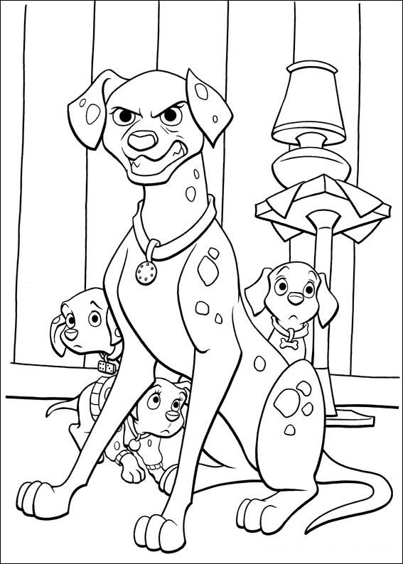 Kolorowanka inspirowana filmem "102 dalmatyńczyki" wyprodukowanym w 2000 roku przez studio Disneya.