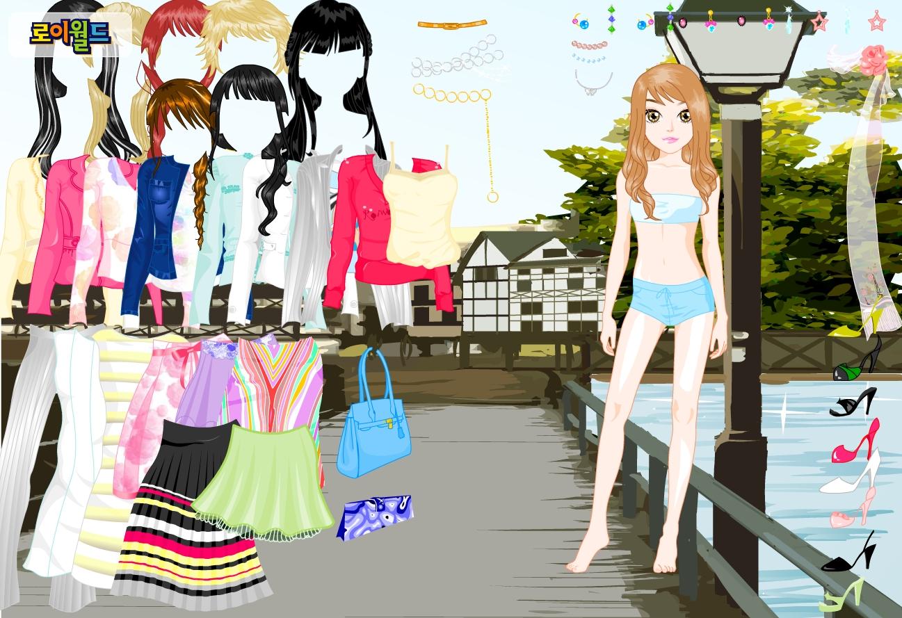 Ubieramy typową nastolatkę w fajne kolorowe ubrania, przygotowując ją do spaceru po mostku nad rzeką, gdzie właśnie przebywa.