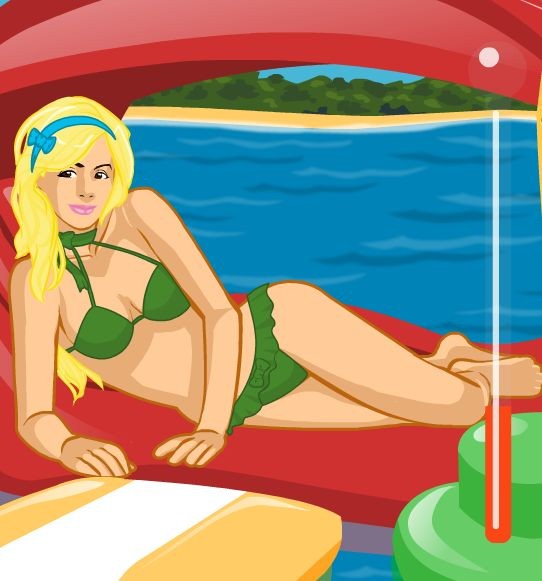Młoda kobieta przebywa nad wodą rozkoszując się ostatnimi dniami lata. Spraw, by była fajnie ubrana i wszystkim imponowała.