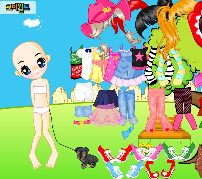 Ubieramy małą dziewczynkę przebywającą na łonie natury ze swoim małym pieseczkiem. Do dyspozycji mamy gustowne, pasujące do naszej modelki ubranka.