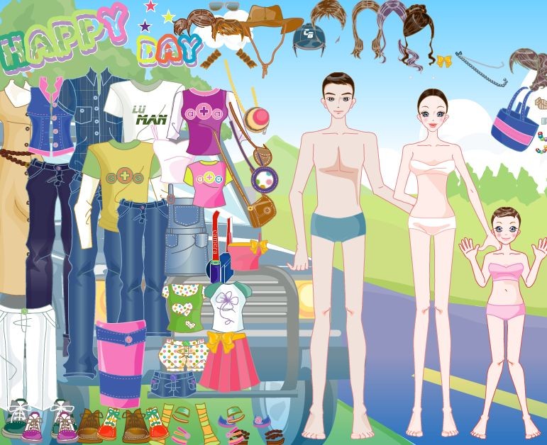 Tym razem nie ubieramy pojedynczej postaci, nie jest to również para. Ubieramy całą rodzinę: mamę, tatę i córkę. Szkoda tylko, że psa nie ma.