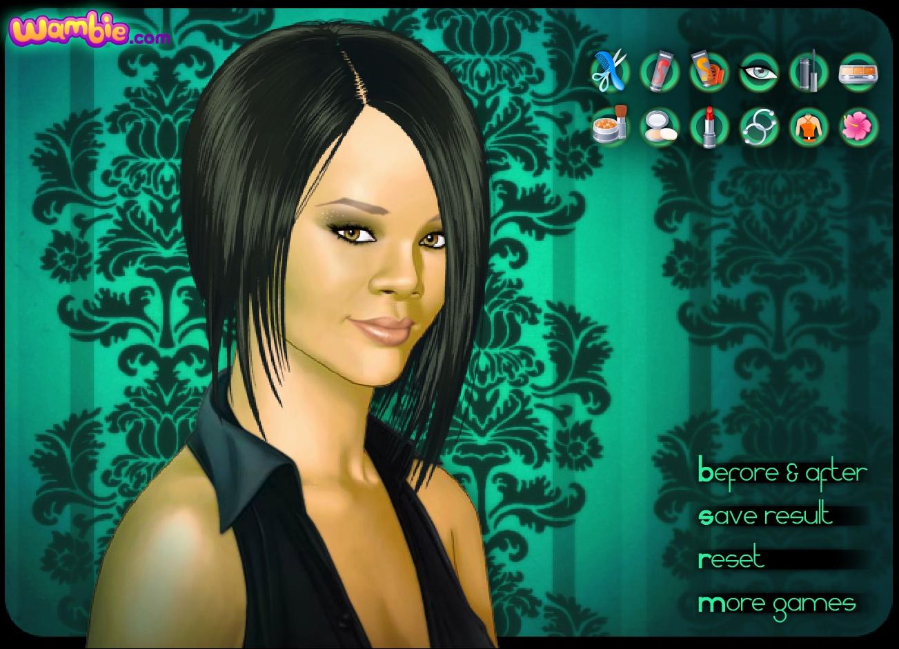 Rihanna - postać wszystkim dobrze znana. Tym razem to właśnie Ty musisz zapewnić jej odpowiedni wygląd poprzez zrobienie makijażu i dobranie ubrań.