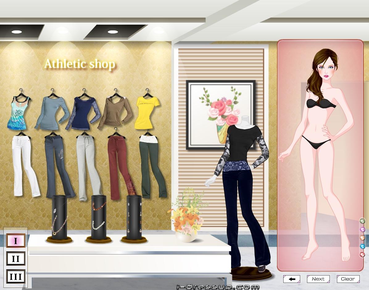 Młoda kobieta wybrała się do sklepu z ubraniami dla osób lubiących spędzać aktywnie czas. Pomóż jej wybrać fajne ciuszki na poranny jogging.