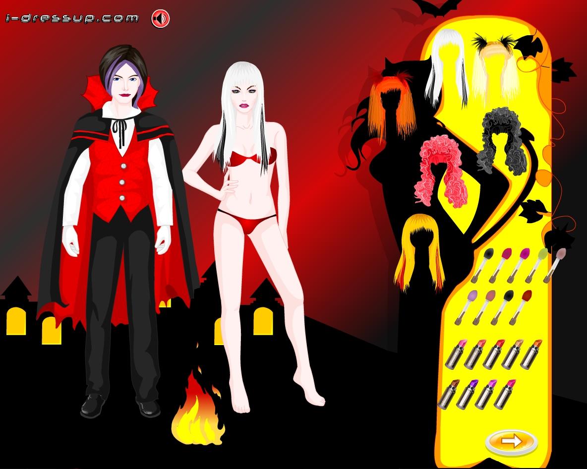 Dziewczyna z chłopakiem wybierają się na bal przebierańców. Postanowili, że przebiorą się za wampirów. Chłopak już gotowy, a dziewczyna czeka na Twój ruch.