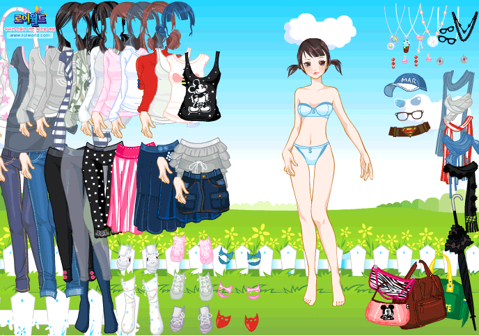 Tym razem mamy do czynienia z niezwykle dziewczęcą nastolatką przebywającą na polance na wsi. Dobierz dla niej ciuszki, które podkreślą jej dziewczęcy charakter i nadadzą fajnego wyglądu.