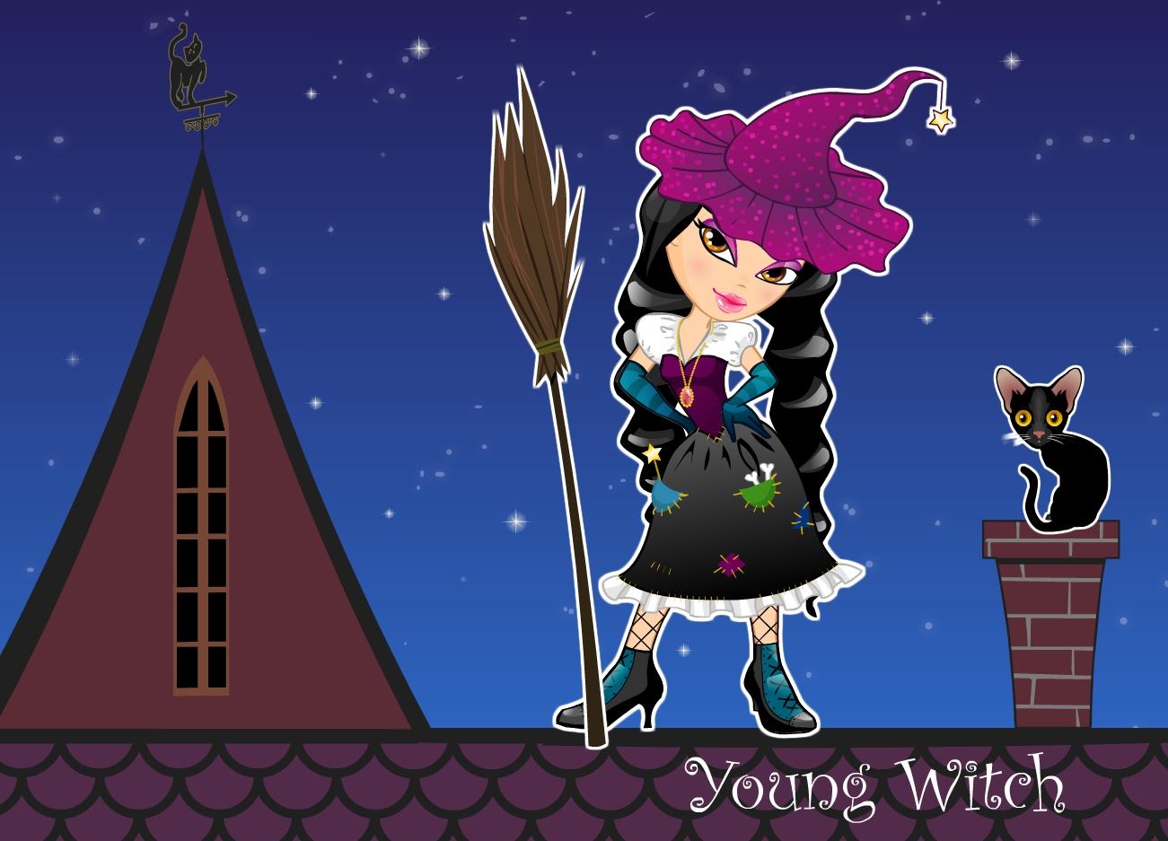 Zadbaj o wygląd młodej czarownicy przebywającej w środku nocy na dachu domu. Spraw, by prezentowała się odpowiednio, jak na czarownicę przystało.