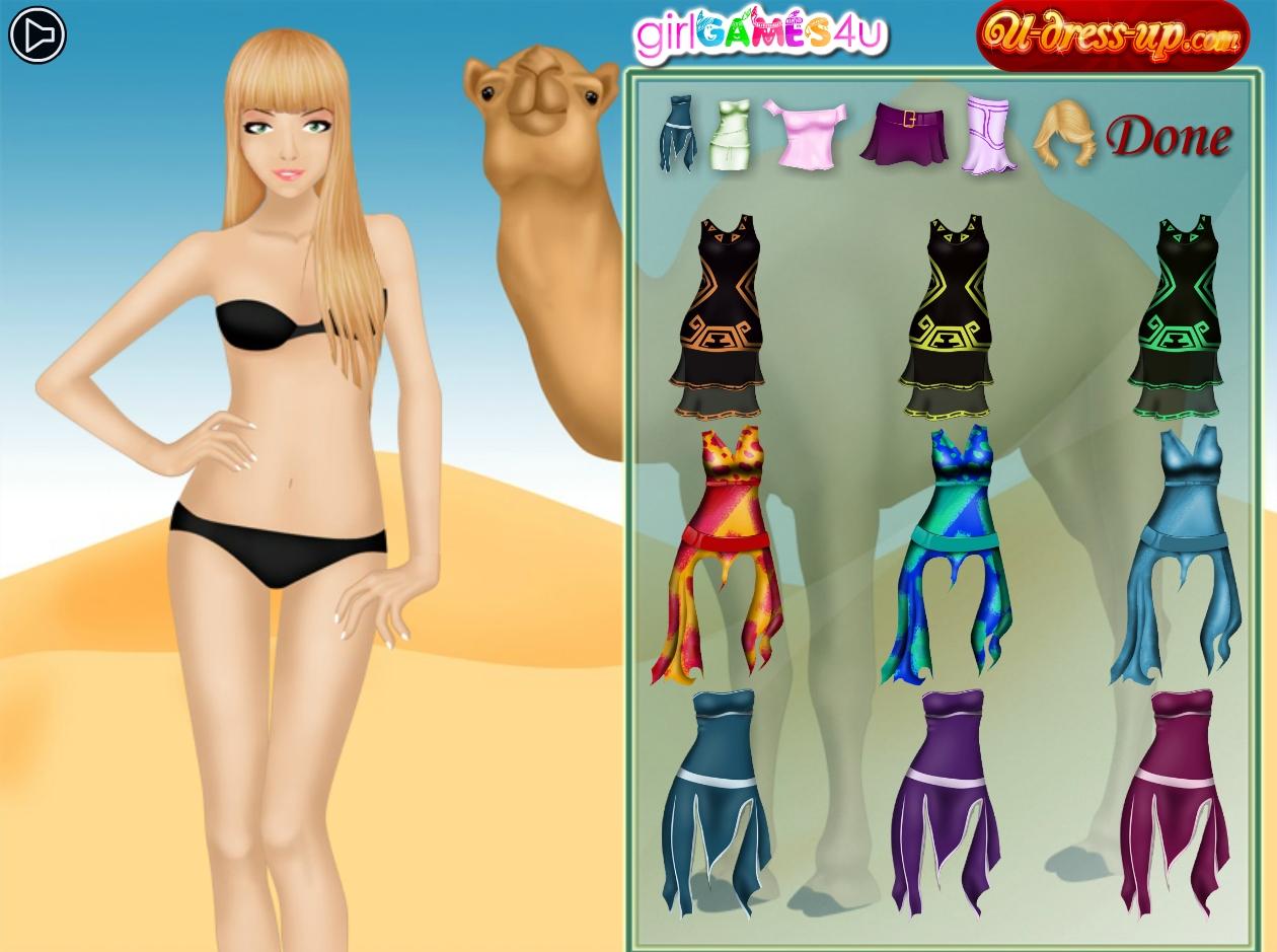 Zadbaj o egipską księżniczkę, która podróżuje swym wielbłądem. Dopasuj dla niej gustowne ciuszki pasujące do sytuacji.