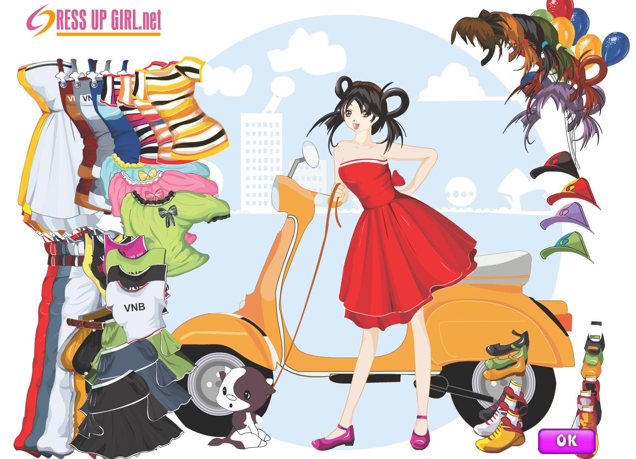 Dziewczyna bardzo lubi jeździć skuterem. Przy okazji chce też fajnie wyglądać. Twoim zadaniem jest pogodzić te dwie opcje, dobierając fajne ciuszki na skuter.