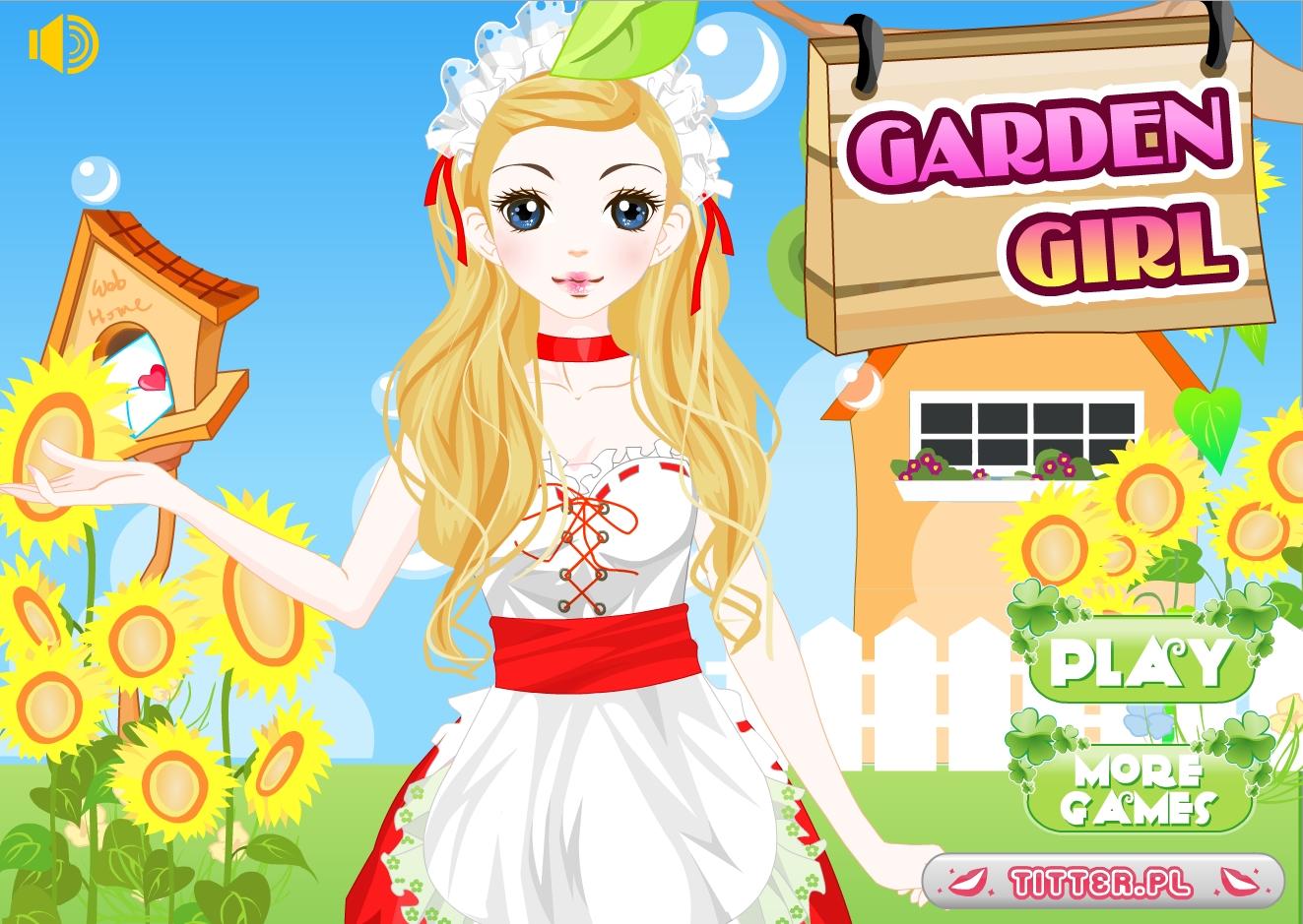Dziewczyna przebywa w pięknym ogrodzie. Twoim zadaniem jest dopasować ubrania, które będą pasowały do niej i do otoczenia.